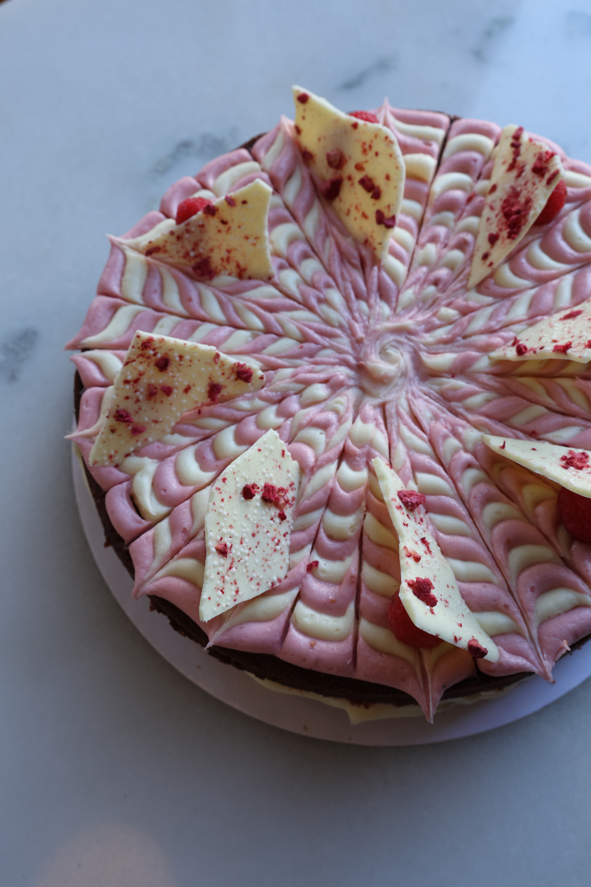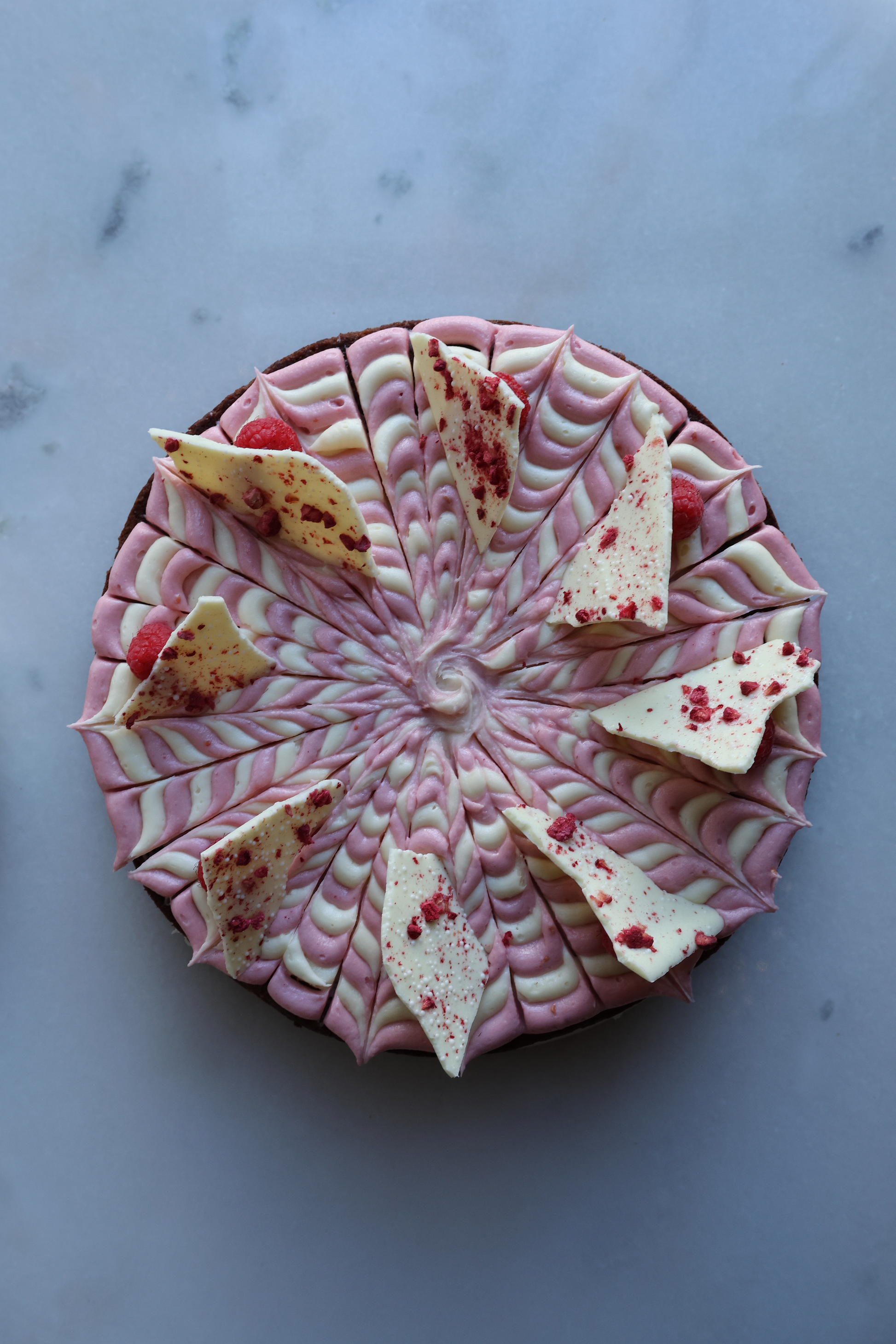 This month's cake special captures the perfect fall bonfire. Two layers of bourbon vanilla cake, soaked in milk and honey, are filled with a whipped smoked chocolate ganache and chocolate crunchies, and finished with graham buttercream and homemade graham cookies.